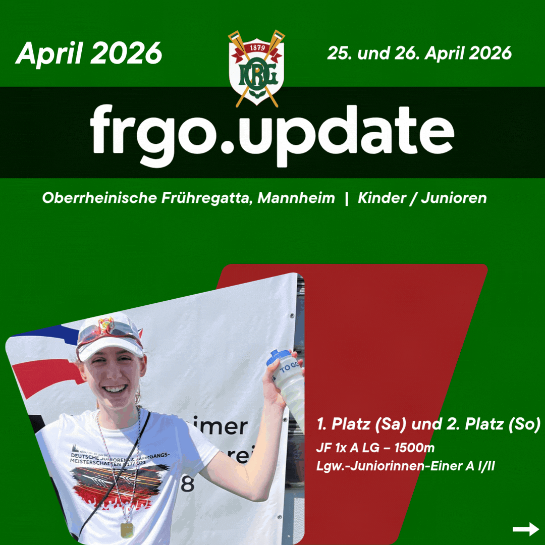 Die Frankfurter Ruder-Gesellschaft Oberrad von 1879 e.V. ist ein aktiver Ruderverein mit ca. 250 Mitgliedern. Unser Bootshaus liegt gemeinsam mit 4 anderen Rudervereinen im Rudererdorf am Mainufer zwischen Frankfurt und Offenbach.